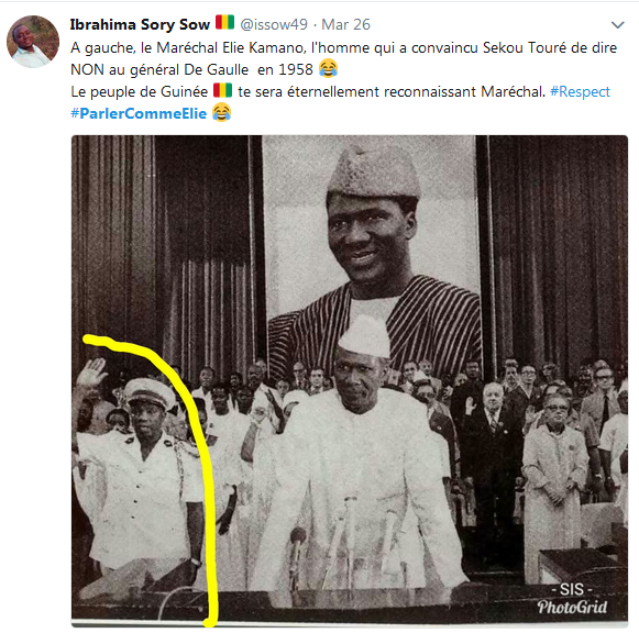 Acte 2 : Un blogueur avisé, Thierno Diallo, connaissant l’âge officiel de d’Elie Kamano, a la bonne idée de « fact-checker » cette « news » à 19H. Problème : Djéliman Kamano à l’état civil, alias Elie, est né officiellement en 1984, c’est-à-dire l’année exacte de la mort de Sékou Touré, le 26 mars plus précisément. C’est vrai que, nourrisson de quelques mois, on peut monter à bord d’un hélicoptère avec un président mais lui parler au téléphone et pouvoir s’en souvenir 34 ans plus tard relève de la science-fiction à la « Black Panther ». S’apercevant de la supercherie, le blogueur s’en émeut sur son mur Facebook en postant la toute première publication avec le mot-clé #ParlerCommeElie. Le bal de l’ironie et de la parodie était ainsi lancé et ne tardera pas à se propager sur Twitter.