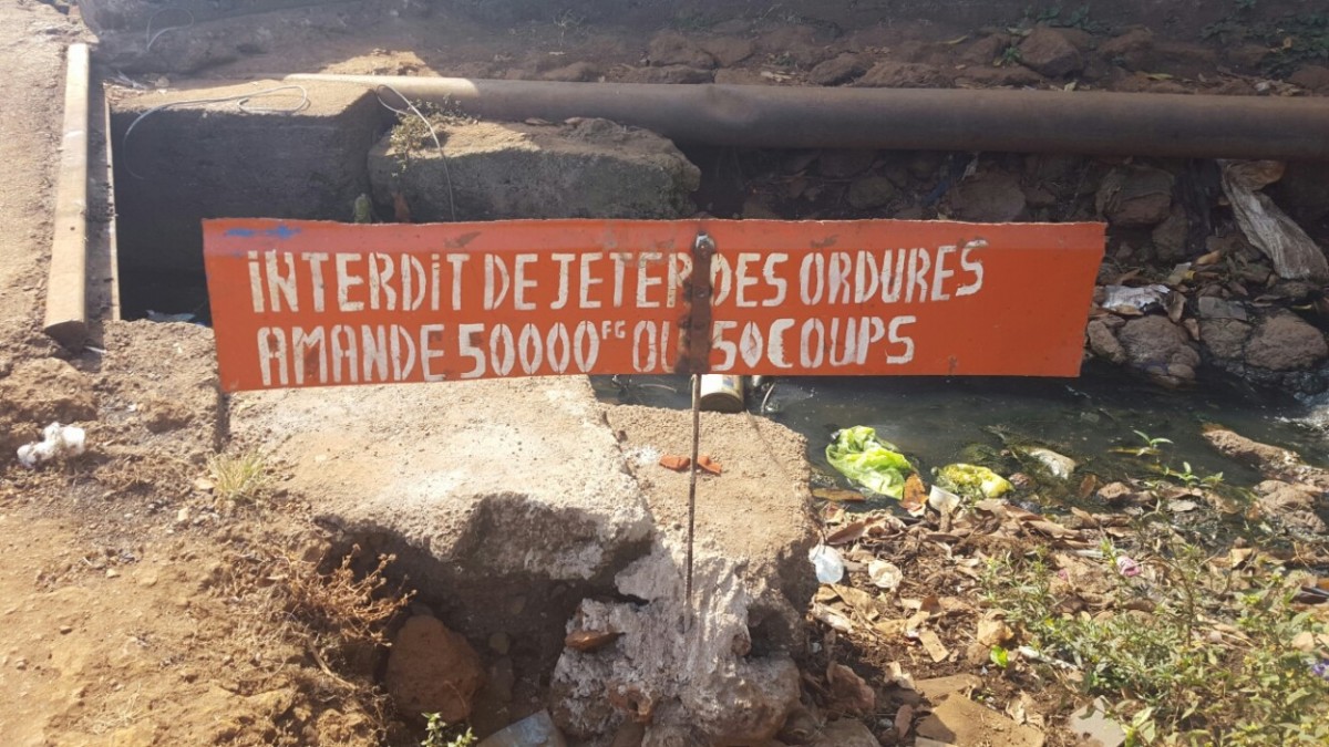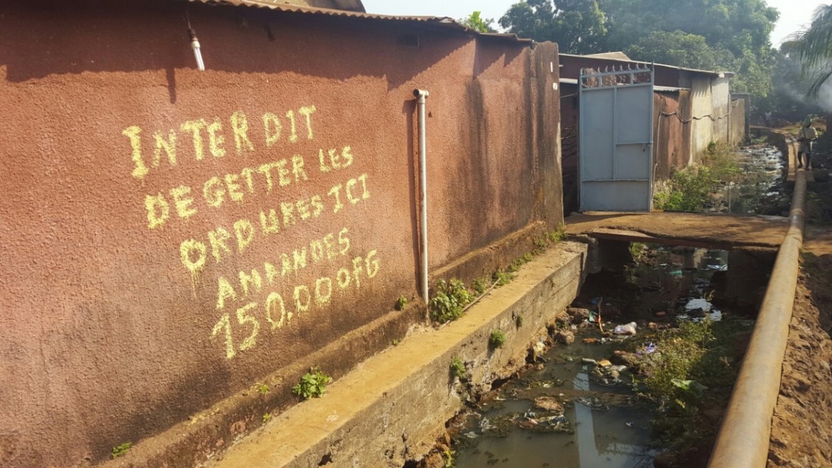 Justement à l’angle des deux rues, on peut lire au mur, écrit par un riverain dans un français approximatif, « interdit de jeter des ordures ici, amende 150.000 FG ». Une interdiction que portent quasiment tous les murs de Conakry. Elle matérialise le conflit entre voisins autour de la gestion des déchets que l’on balance où l’on peut, faute de collecte et de circuits de ramassages organisés et efficaces.« Interdit d’uriner ici » est l’autre inscription qui décore les murs des quartiers ; baromètre de l’absence de toilettes publiques.